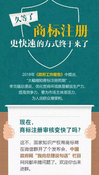 2018年《政府工作报告》中提出,“大幅缩短商标注册周期”。李克强总理说,有话营商环境就是解放生产力、提高竞争力,腰围市场主体添活力,为人民群众增便利。商标网打开慢、商标审查周期长、纸件邮寄折磨人……图文详解为您解忧!