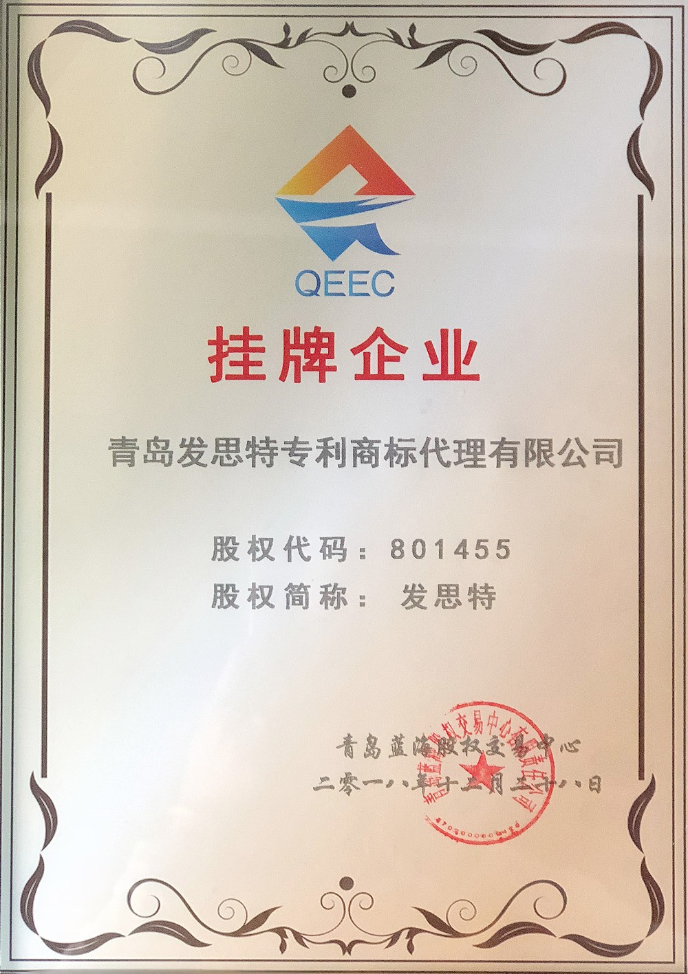 1月7日,发思特专利商标代理有限公司在青岛蓝海股权交易中心成功挂牌!