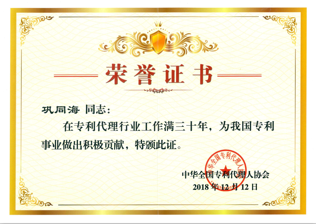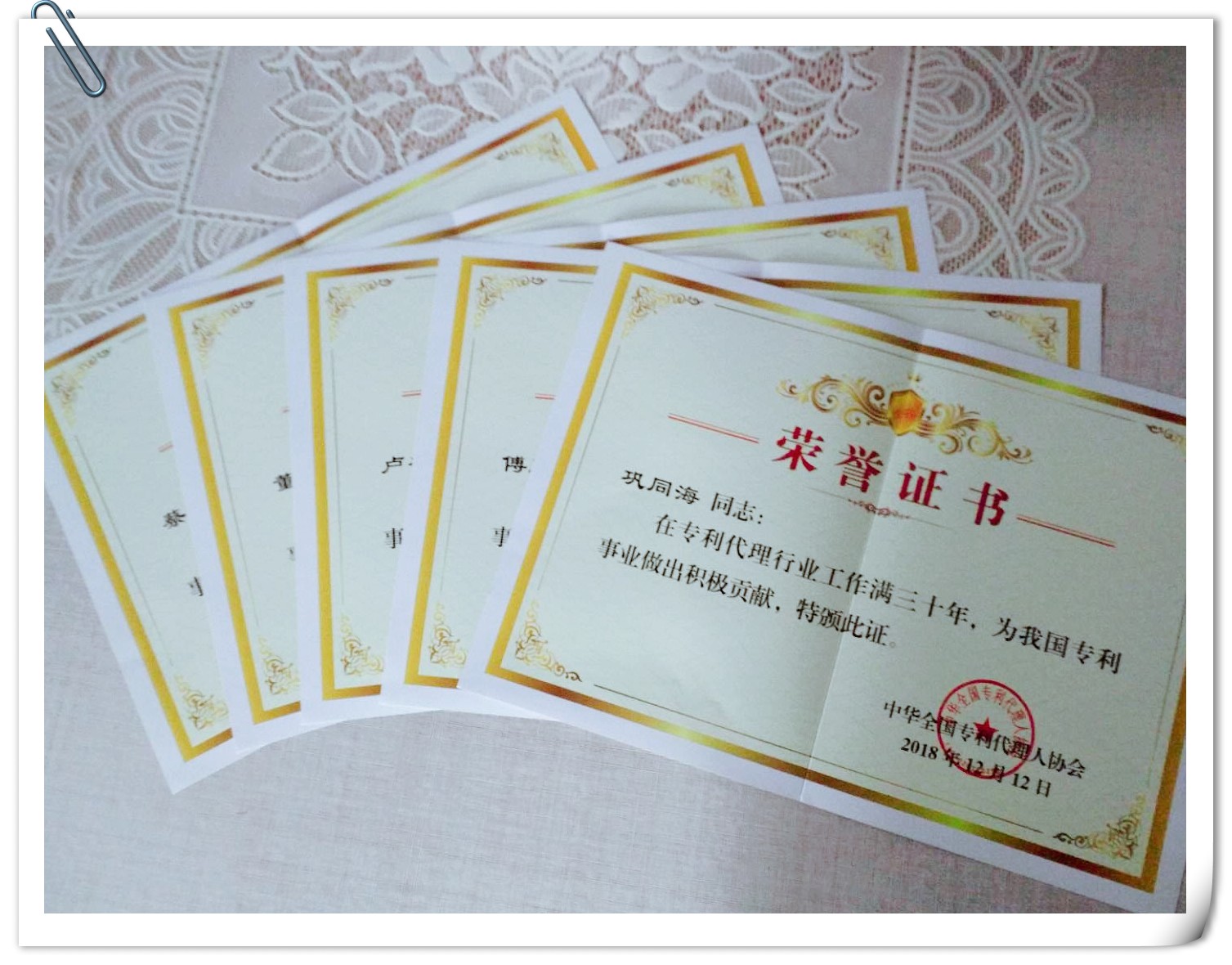 日前,中华全国专利代理人协会成立30周年座谈会召开,发思特公司巩同海、董宝锞、蔡绍强、卢登涛、傅玉英5位专利代理人,荣获中华全国专利代理人协会颁发的荣誉证书,表彰其在“专利代理行业工作满三十年,为我国专利事业做出积极贡献”。